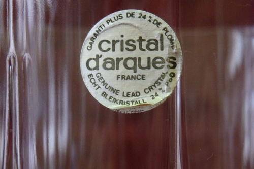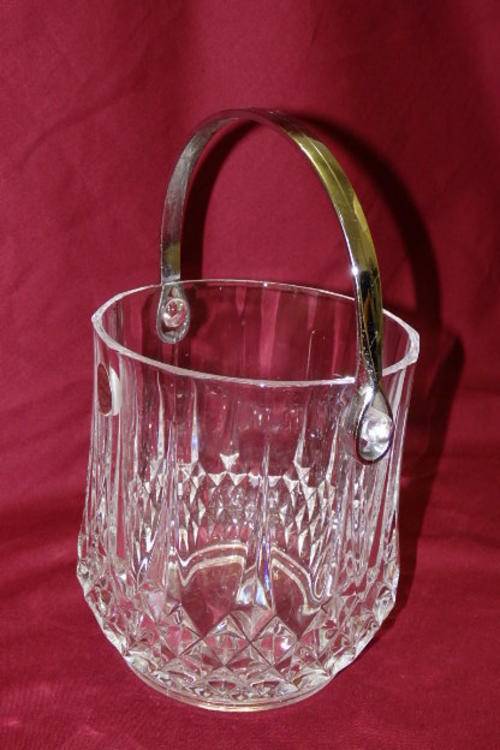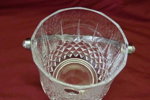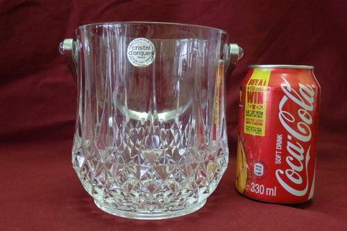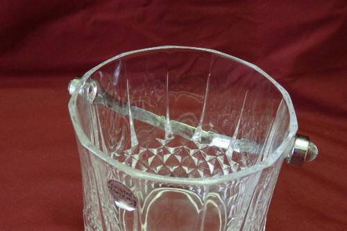THIS EXQUISITE "CRISTAL d'ARQUES" OF FRANCE GENUINE LEAD CRYSTAL ICE BUCKET IS IN EXCELLENT CONDITION WITH MINIMAL AGE AND USAGE RELATED WEAR AND TEAR. THERE ARE NO CHIPS OR CRACKS IN THIS STUNNING ICE BUCKET AND THE ORIGINAL LABEL IS STILL AFFIXED TO THE ICE BUCKET. THE METAL HANDLE HAS SOME TARNISHING.