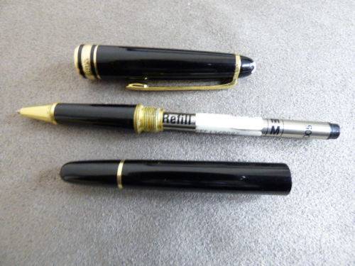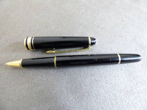 THIS INCREDIBLE GOLD COATED GERMAN MADE MONT BLANC "MEISTERSTUCK" CLASSIQUE BALLPOINT PEN IS IN WONDERFUL CONDITION WITH MINOR AGE AND USAGE RELATED WEAR AND TEAR. THE CLIP AND BAND ARE GOLD COATED. THIS FABULOUS PEN IS IN NEED OF A REFILL, THIS IS A BEAUTIFUL WRITING INSTRUMENT AND WILL MAKE A VERY SPECIAL GIFT FOR SOMEONE DEAR TO YOU.