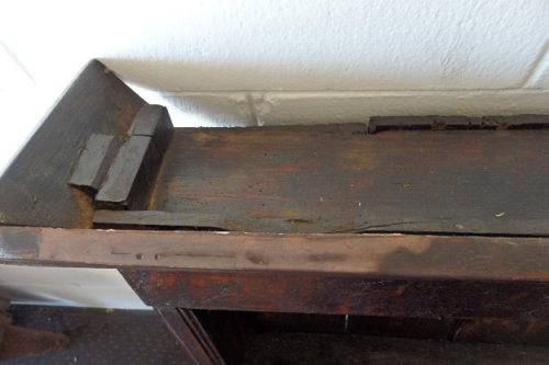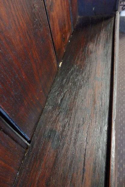 This truly amazing large antique wall mountable display cabinet has loads of charm and is extremely practical and useful for displaying anything from porcelain cups and saucers to jugs and jars. This display shelf is very old (c. mid 1800's) and heavy and is a truly remarkable antique piece of furniture. The cabinet can also be fixed on a buffet as a buffet top. It would look great against a big open wall and would fill a room with character and old-school charm. The shelf also has seven hooks for hanging mugs and cups on. The display shelf measures a very decent 192cm long x 18cm wide x 118cm high. This is an amazing example of a great antique piece with loads of practical use. The panel on the top right of the shelf needs to be replaced. Please view the pics carefully to fully appreciate this awesome display shelf and to confirm the condition.