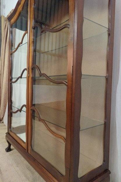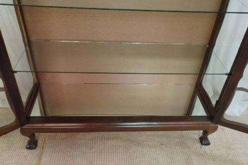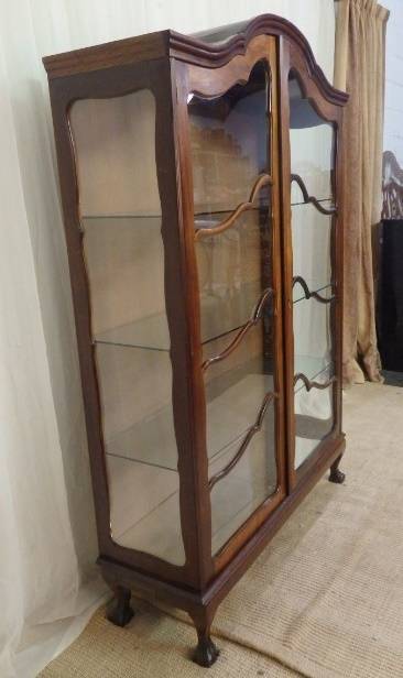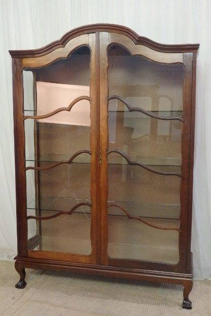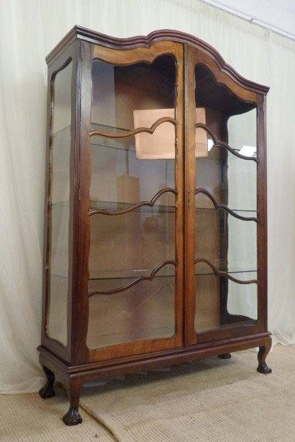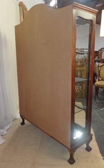 THIS BEAUTIFUL AND VERY ELEGANT ANTIQUE SOLID IMBUIA GABLE TOP BALL AND CLAW SHOWCASE IS IN FABULOUS CONDITION FOR ITS AGE AND HAS ABSOLUTE MINIMAL AGE AND USAGE RELATED WEAR AND TEAR. THE CABINET HAS WONDERFUL DETAILING AND HAS THREE GLASS SHELVES WITH A MIRROR IN THE BOTTOM (WHICH CAN BE REMOVED). THIS IS MAGNIFICENT AND SOLIDLY BUILT ANTIQUE FURNITURE!!! THIS BEAUTIFUL SHOWCASE WOULD LOOK ABSOLUTELY FABULOUS IN AN ENTRANCE HALLWAY, STUDY OR PERHAPS IN AN EXECUTIVE OFFICE FOR YOUR VALUABLE COLLECTIBLES. THE CABINET IS A REALLY BEAUTIFUL COLLECTOR PIECE!!! THE SIZE OF THE CABINET IS APPROXIMATELY 1250mm LONG x 400mm WIDE x 1840mm HIGH. THERE IS NO KEY FOR THE DOOR.