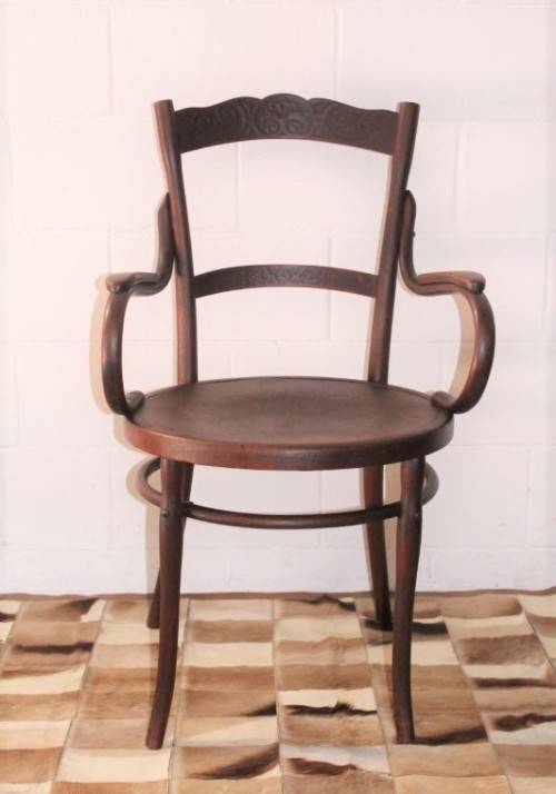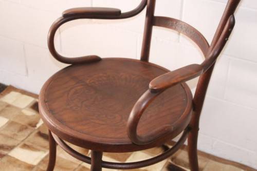 This incredible and very rare antique Edwardian solid oak bentwood armchair/ carver chair with a pressed pattern in the seat as well as the backrest is a superb find and one of only a handful of such bentwood armchairs that I have ever come across. The chair most likely dates to around 1910 and is still in remarkably good condition for a late Art Nouveau piece. The chair measures 57cm long x 55cm wide x 95cm high. This wonderful chair would be incredible in a home office or living room or even in a bedroom. Please view the pics carefully to fully appreciate this rare antique Edwardian bentwood armchair chair and to confirm the condition. Please view the shipping options or request courier costs prior to purchasing any of our products.