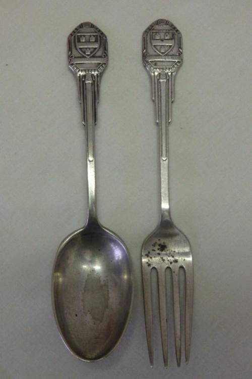 AN INCREDIBLE RARE VINTAGE MAPPIN AND WEBB "CITY OF JHB" JUBILEE COMMEMORATIVE SPOON AND FORK SET