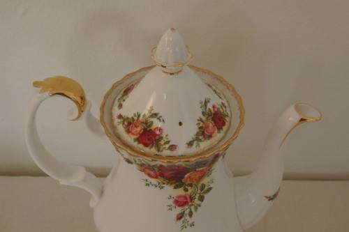 THIS INCREDIBLE ROYAL ALBERT "OLD COUNTRY ROSES" SERIES FINE BONE CHINA 6-CUP TEAPOT IS IN THE EXQUISITE ROYAL ALBERT "MONTROSE" CUP SHAPE AND ARE IN AWESOME CONDITION. THE TEAPOT IS 200mm LONG (SPOUT TO HANDLE) x 225mm HIGH. THERE ARE ABSOLUTELY NO CHIPS OR CRACKS IN THE TEAPOT AND LID. THE GILDING IS STILL IS FANTASTIC CONDITION. THE OLD COUNTRY ROSES SERIES WAS RELEASED IN 1962 AND IS A CURRENT PATTERN, SO BUILDING UP A COLLECTION WOULD BE EASY. THE PATTERN CONSISTS OF A 3 ROSE DESIGN (PINK, RED AND YELLOW) SET ON CRISP WHITE PORCELAIN AND FINISHED WITH 22ct GOLD GILDED EDGES AND DETAILING.