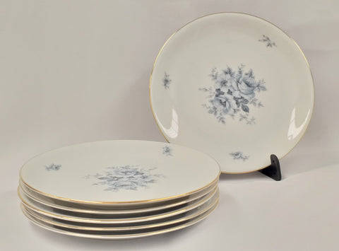 This rare set of six mid-century KPM Krister of Germany (now Rosenthal) fine porcelain side/ pastry/ cake plates are an amazing find and are in absolutely stunning condition. The plates each measure 17cm across and the pattern consists of a series of blue roses and open flowers on a crisp white background with a gold trim. The makers stamp at the back of the porcelain was only in use between 1952 and 1965. KPM porcelain is without a doubt some of the finest porcelain produced in Germany and the quality is evident by just holding their pieces. There are no chips or cracks in any of the pieces and the gold trim is in remarkably good condition.