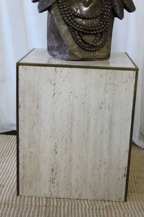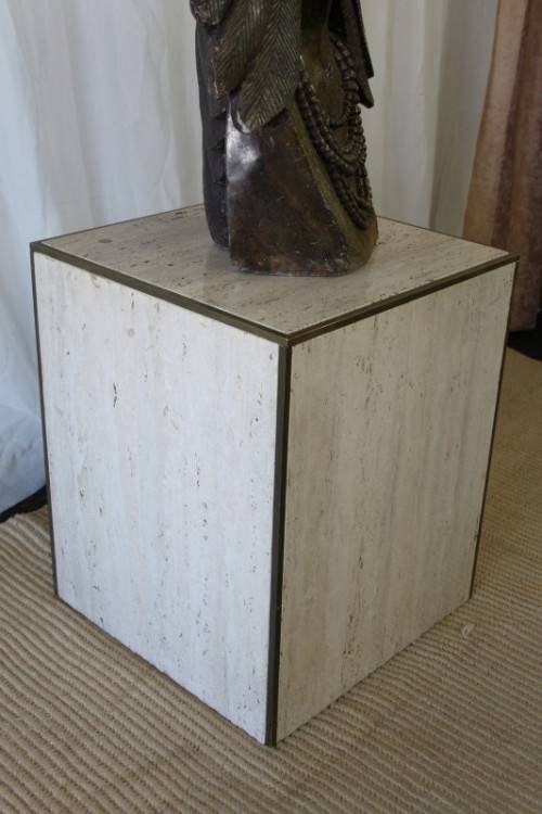 THIS INCREDIBLE SOLID ITALIAN MARBLE AND SOLID BRASS PEDESTAL IS IN AMAZING CONDITION AND MEASURES A VERY DECENT 560mm HIGH x 460mm LONG x 460mm WIDE. THE PEDESTAL IS PERFECT FOR LARGE HEAVY DISPLAY PIECES SUCH AS STONE OR MARBLE CARVINGS OR AN ORNATE BRASS AND MARBLE TABLE LAMP ETC AND HAS 2cm THICK MARBLE PANELS WHICH GIVES IT SPECTACULAR WEIGHT. THE EDGES OF THE PEDESTAL ARE FINISHED WITH BRASS STRIPS WHICH GIVE IT A VERY STYLISH AND SLIGHTLY MORE MODERN LOOK TO THE TRADITIONAL COLUMN STYLE PEDESTALS. PLEASE VIEW THE PICS CAREFULLY TO FULLY APPRECIATE THIS TRULY STUNNING ITALIAN MARBLE PEDESTAL AND TO CONFIRM THE CONDITION.