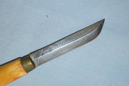 THIS INCREDIBLE TRADITIONAL HAND MADE "J. MARTTIINI" OF FINLAND PUUKKO HUNTING/SKINNING KNIFE & SHEATH HAS THE MAKES ENGRAVED SIGNATURE ON THE BLADE OF THE KNIFE. THE 15cm KNIFE IS IN GREAT CONDITION AND I DOUBT THAT IT WAS EVER USED. THE SHEATH IS LEATHER.