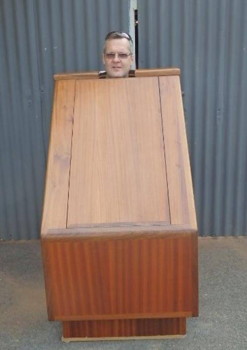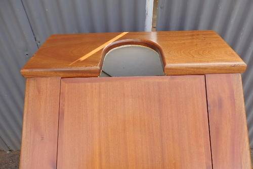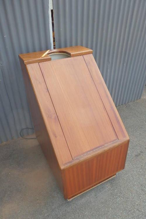THIS INCREDIBLE VINTAGE IMBUIA "PORTABLE" HOME "SIT-IN" ELECTRIC SAUNA IS IN SUPERB CONDITION AND HAS BEEN VERY WELL LOOKED AFTER. THIS IS A TRULY RARE FIND, AND NOT SOMETHING ONE COMES ACROSS OFTEN. THE SAUNA IS A SOLID IMBUIA AND VENEER COMBINATION WITH THE INSIDE CHAMBER LINED IN FIBREGLASS. THE SAUNA HAS AN ADJUSTABLE SEAT. THE SAUNA MEASURES 710mm WIDE x 980mm DEEP x 1250mm HIGH. THE THERMOSTAT IS NOT WORKING AND WOULD NEED TO BE REPLACED. THE WORKMANSHIP IS AMAZING AND THERE IS VERY MINIMAL AGE AND USAGE RELATED WEAR AND TEAR. A SAUNA IS THE IDEAL MUSCLE RELAXER AND IS AMAZING FOR WEIGHT LOSS AND SKIN TONING.