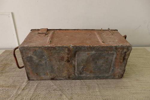 THIS INCREDIBLE WORLD WAR 2 (1941) METAL AMMUNITION BOX WITH DOUBLE LATCHES AND DOUBLE CARRY HANDLES MEASURES 48.5cm x 22cm AND IS 19.5cm HIGH. THE AMMO CASE HAS BEEN PAINTED QUITE A FEW TIMES AND WOULD MAKE A FANTASTIC RESTORATION PIECE FOR COLLECTORS. NOT TOO MANY OF THESE AWESOME AMMO CASES ARE STILL AROUND.