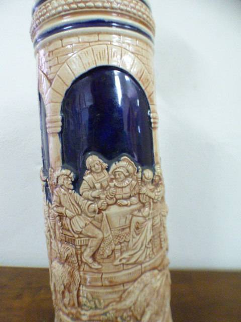 This incredible vintage x-large Gerzit made stoneware (lidded) Stein with traditional hand glazed and painted detailing is in great condition for its age and measures 50cm high. The stein is in excellent condition with no chips or cracks in the stoneware and absolute minimal/ normal age and usage related wear and tear. The Stein would make a superb addition to any bar or tankard collection. Please view the pics carefully to fully appreciate this fantastic vintage German stein and to confirm the condition