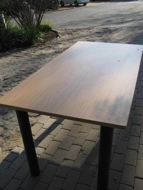 AN OAK VENEERED TABLE WITH METAL LEGS... GREAT FOR THE OFFICE,SEWING, CRAFTING, ETC @CRAZY R1 START