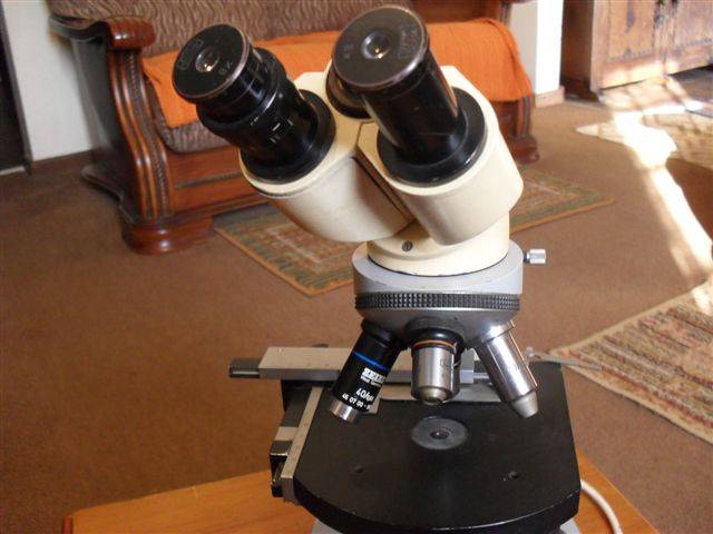AN OLD ZEISS WEST GERMAN MICROSCOPE