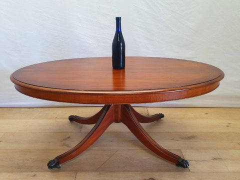 This Gordon Fraser claw footed oval coffee table is in good condition with minor. It measures 124cm long x 71cm wide x 53cm high. The table is claw footed and on its original castors. One could have this table in a large entrance hall as a display table or in a foyer, reception area etc. Please view the pics as they form part of the description.