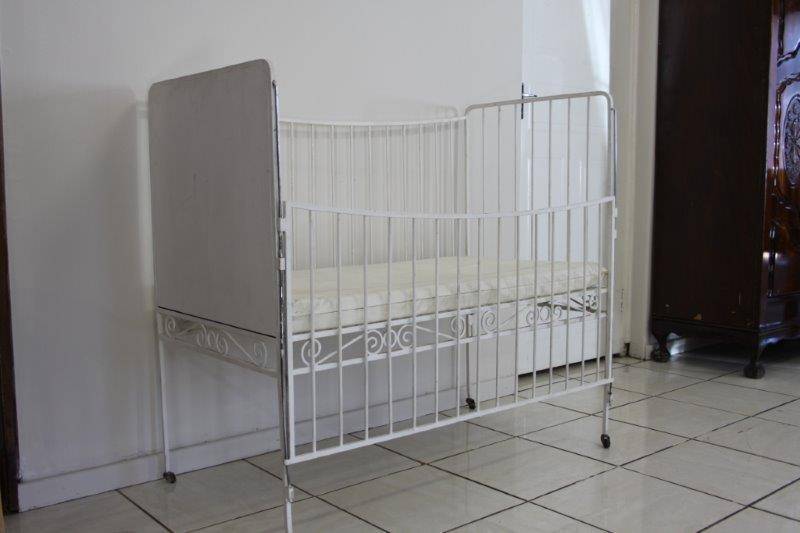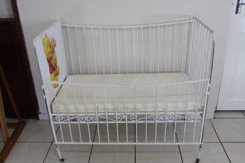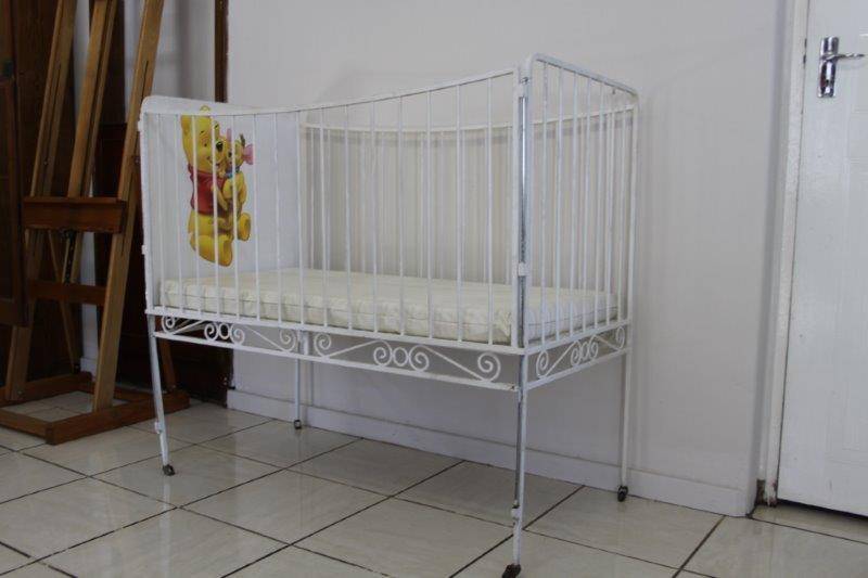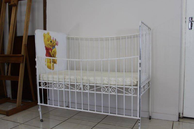 THE SIZE OF THE COT IS APPROXIMATELY 1220mm x 650mm x 1110mm HIGH. PLEASE VIEW THE PICS VERY CAREFULLY FOR MORE DETAIL AND TO APPRECIATE THIS PIECE OF FURNITURE.... WHAT YOU SEE IS WHAT YOU GET! POSTAGE WILL NOT BE POSSIBLE SO PLEASE COLLECT IN EDENVALE.