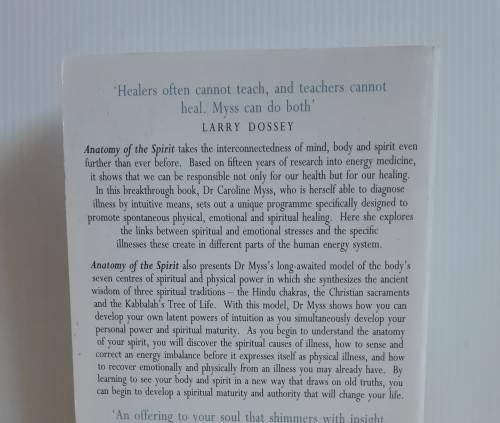 Anatomy of the Spirit is the boldest presentation to date of energy medicine by one of its premier practitioners, internationally acclaimed medical intuitive Caroline Myss, one of the "hottest new voices in the alternative health/spirituality scene" (Publishers Weekly). Based on fifteen years of research into energy medicine, Dr. Myss's work shows how every illness corresponds to a pattern of emotional and psychological stresses, beliefs, and attitudes that have influenced corresponding areas of the human body.
