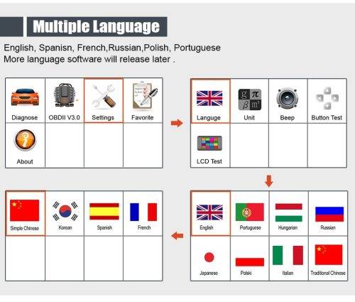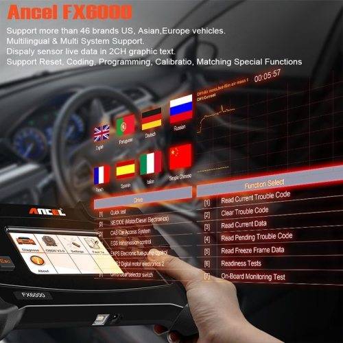 Ancel FX6000 Built-in Multi-language: English, Spanish, French, Portuguese, German, Dutch, Polish, Korean, Russian