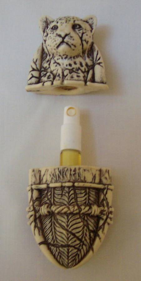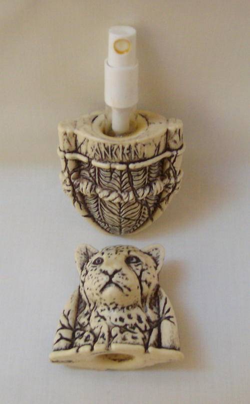 Resin ivory Egyptian leopard mummy case with a 3ml mini spray.