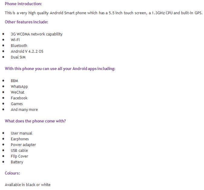 Android 3G/GPS Smartphone with 5.5 inch display 1.3GHz Dual Core Note3 Special by M-Horse