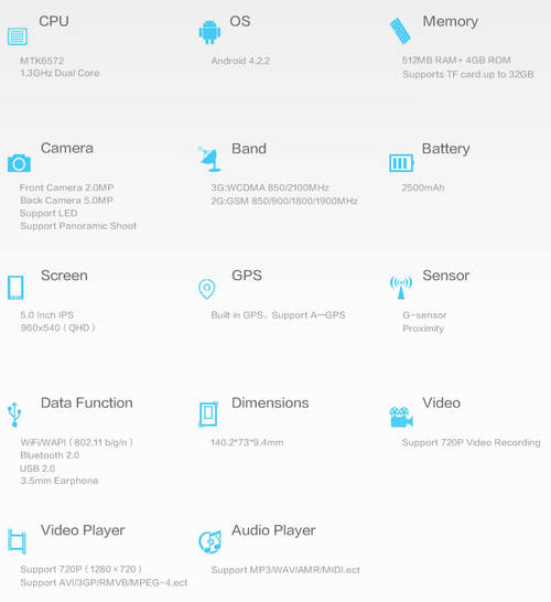 Android 4.2 5 Inch touch screen 960x540 3G Dual SIM GPS SmartPhone Dual Core 1.3G CPU DOOGEE DG300