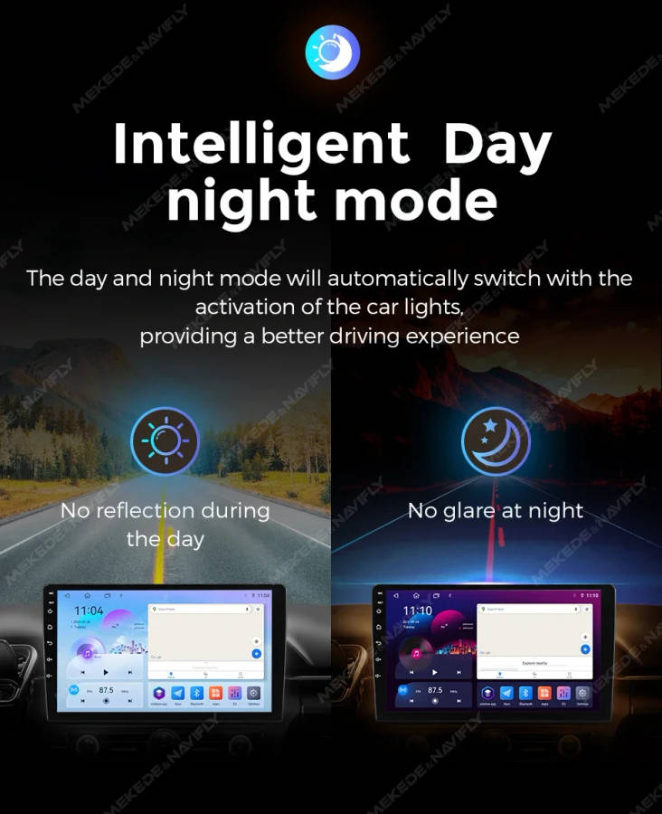 The day and night mode will automatically switch with the activation of the car lights, providing a better driving experience