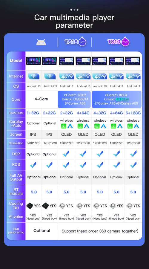 TS711 1+32G TS722 2+32G ( OPTIONAL Carplay function )