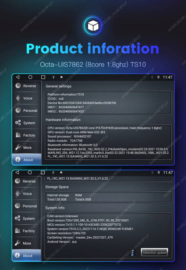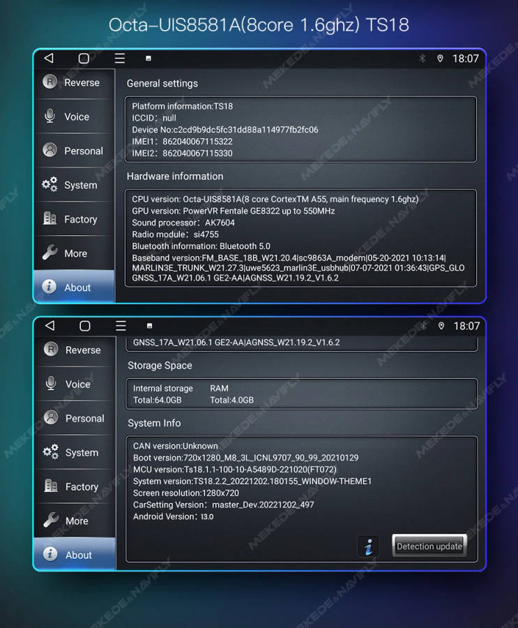 3, Octa Core API30+TS10(1.8GHZ+UIS7862 CPU) TS18(1.6GHZ+UIS8581 A) (1GB/2GB/4GB/6GB) Flash + (16GB/32GB/64GB/128GB) Memory ;