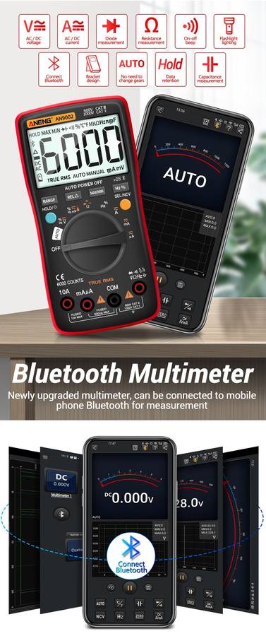 ANENG AN9002 is a newly upgraded professional multimeter, which can realize remote operation and measurement through Bluetooth technology. The measurement data of it is visualized and recordable through the Bluetooth of the mobile phone, It help us make the measurement more convenient and more accurate.