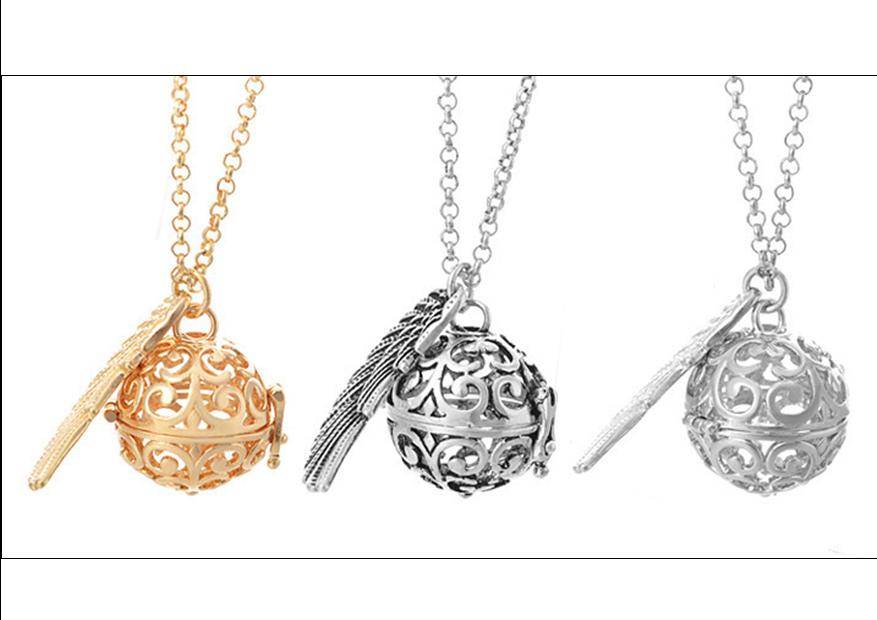 GOLD ANGEL WHISPERER NECKLACE WITH ANGEL WINGSWITH BELL INSIDE - CALL YOUR ANGELS FOR PROTECTIONIN GOLD FINISH