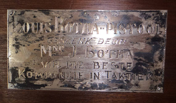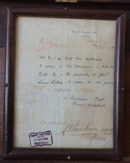 The current owner told me that he has heard that the pistol itself is kept by the Bloemfontein War Museum, but I cannot confirm this.