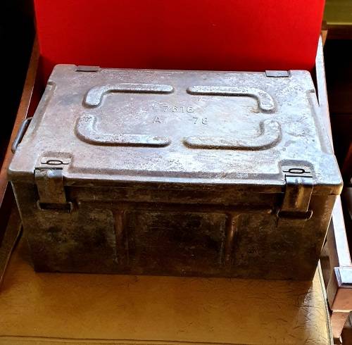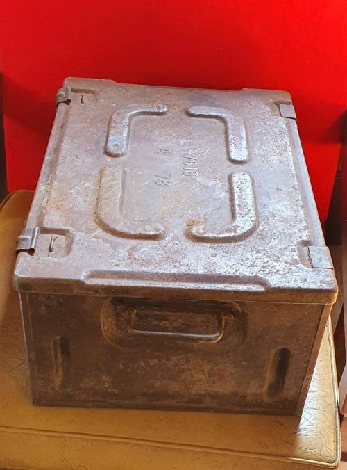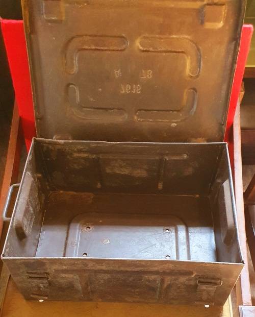 ON AUCTION: 1 X ANGOLA BUSH WAR. BREN MACHINE GUN AMMO STEEL BOX. 1978. GOOD CONDITION. ALL HINGES AND LOCKS INTACT.