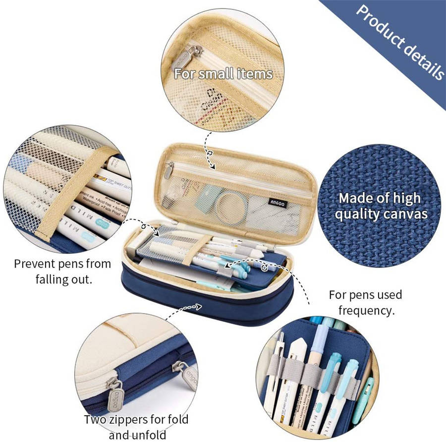 Product | Angoo Pencil Case Large Capacity Zipper Pencil Case Canvas Pencil Bag For Cute Students School Stationery Supplies (Multiple Options) |