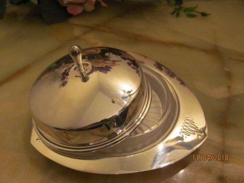 VINTAGE SILVER PLATED ANGORA ART DECO STYLE BUTTER DISH WITH DOMED LID AND GLASS INNER