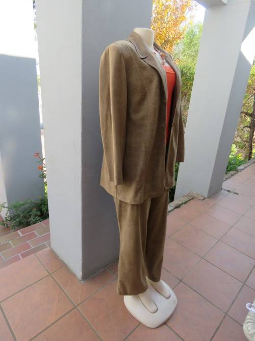 Animal print 3 piece suit in golden brown.Consist of pants,skirt and jacket in size 42/18.As new.