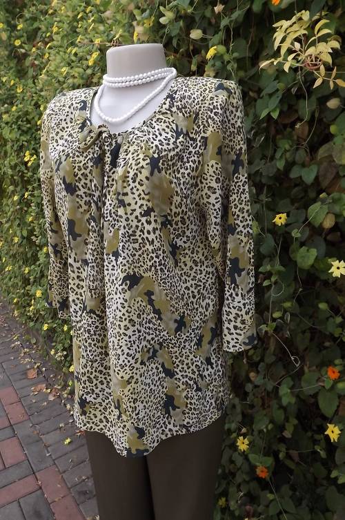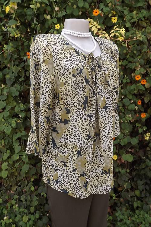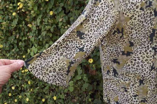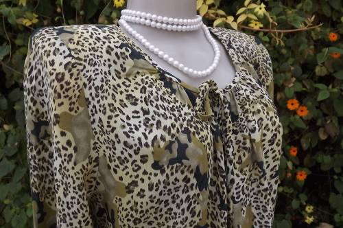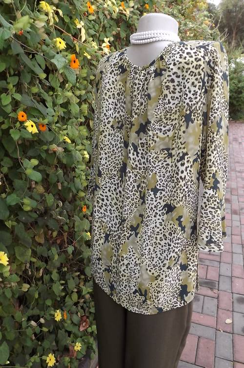 Animal print loose top with gathered neckline.Size 40/16. Three quarter sleeves with flare cuffs.