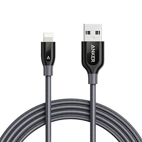 Anker PowerLine+ Lightning Cable (6ft) Durable and Fast Charging Cable [Kevlar Fiber & Double Braided Nylon] for iPhone; iPad and More(Gray)