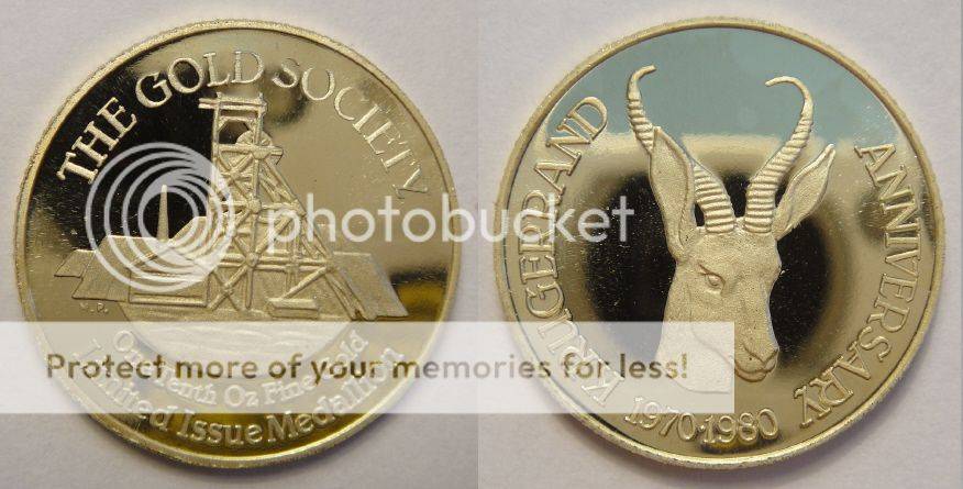 Anniversary of the Krugerrand 1970-1980 : One Tenth OZ Fine GOLD Medallion