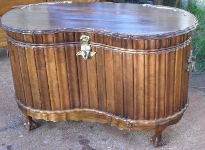 ANOTHER WONDERFUL FIND!!! VERY OLD BALL & CLAW KIDNEY SHAPE KIST. ABSOLUTE RARE TO FIND TODAY. WITH LOVELY BRASS INLAYS AND HANDLES (CAN DO WITH POLISHING), ALL IN ORIGINAL CONDITION. IMBUIA (?). MEASURING 67 X 57 110 CM.