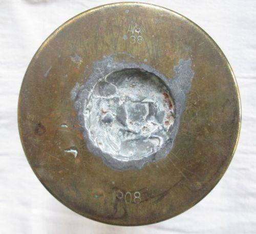 Two different reworked brass artillery shells, marked as Anti Submarine launching charges. Sizes are 60mm x 170mm and 70 x 130mm. Tracked postage is R85.00.