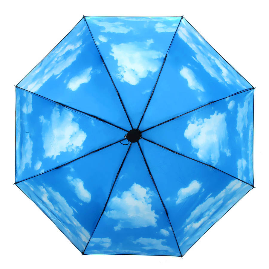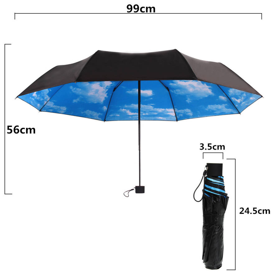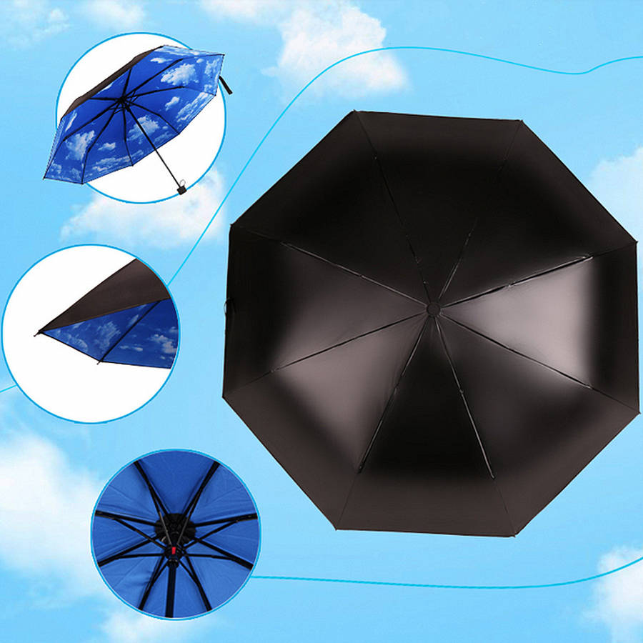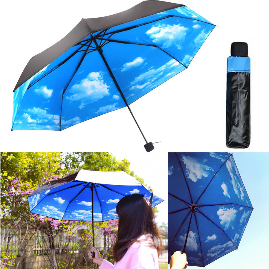 Anti-UV Sun Protection Umbrella Blue Sky 3 Folding Parasols Rain UmbrellaWind and rain outside, no matter how big, you still sunny.