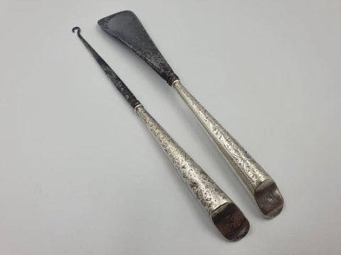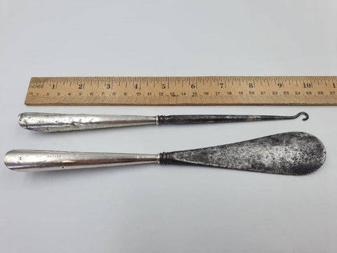 This amazing hallmarked sterling silver Victorian lace puller and shoe horn are in good antique condition. The hallmarks on the handles consist of the makers mark "A&LLt" confirming it is a Adie & Lovekin ltd piece, The Lion Passant confirming it is British sterling silver (925), the Anchor Assay mark confirming they were made in Birmingham and the date letter "Z" confirming they were made in 1899. There is tarnishing on the steel pieces as shown in the pics. Please view the pics as they form part of the description.