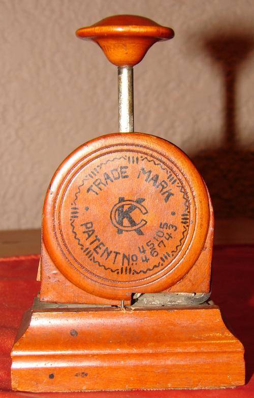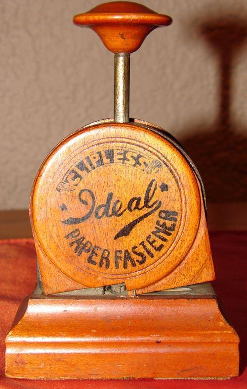Antique 1910`s Ideal Clipless Paper Fastnener -Steel mechanism/wooden body-marked