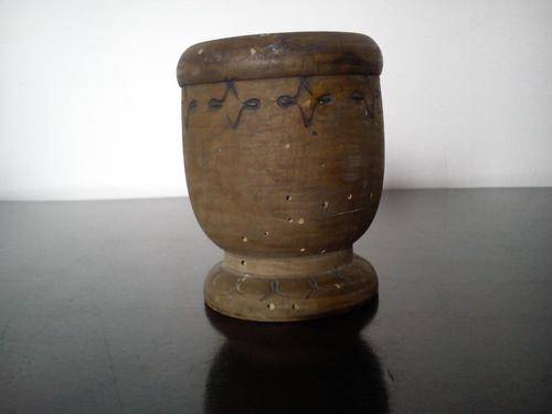 Antique Folk art Bulgarian cup from the early 40's. A very beautiful and fine handmade from wood, do pokerwork and hand carved and pyrographed ! The cup have not a cracks, but there are worm-holes carpenter ants - a sign of its antiquity. Not thoroughly cleaned, not restored - original subject in its authentic form! Very rare and very good condition! Height 9 cm, diameter 7 cm