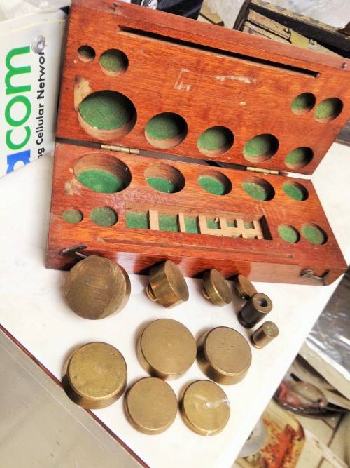 END OF 11 Assorted Brass WEIGHTS + 1 WOOD BOX *NOT A MATCHING SET -LISTING