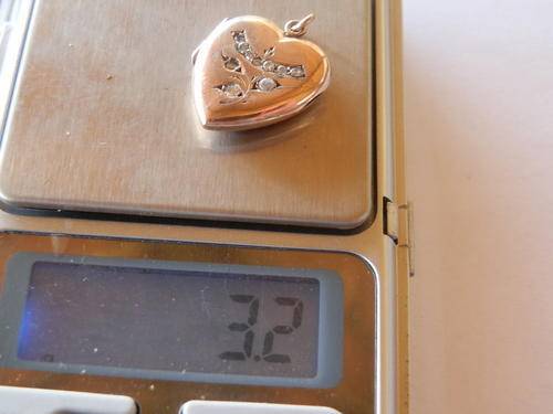 Antique 9ct rose gold and diamond heart locket - shipping R40 insured
