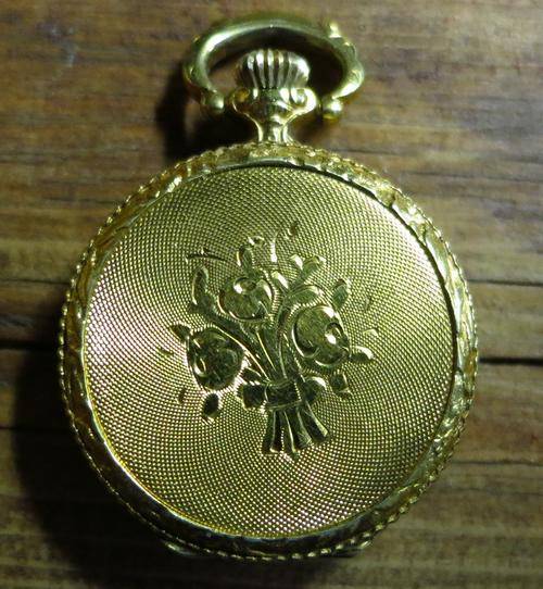 Beautiful decorative gold plated pocket watch pendant from the world famous Uhlmann Cie.