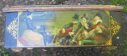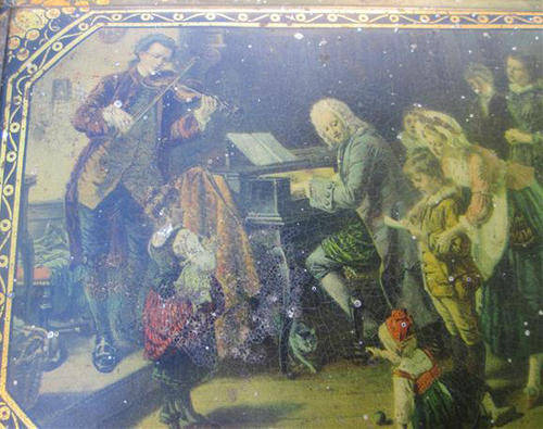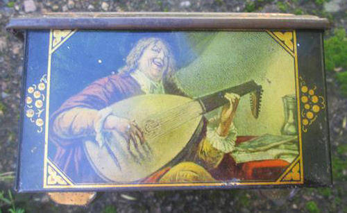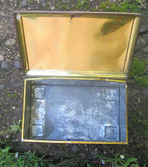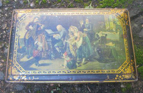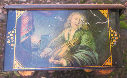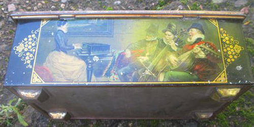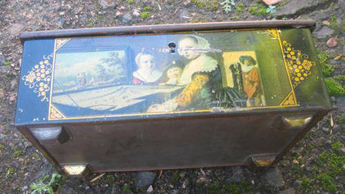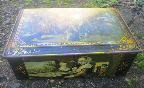 ANTIQUE BISCUIT TIN IN PRETTY GOOD SHAPE CONSIDERING ITS "OLD AGE" PLEASE HAVE A GOOD LOOK AT THE MANY PICTURES PROVIDED AS THEY WILL GIVE YOU A GOOD IDEA AS TO THE CONDITION OF THIS LOVELY OLD TIN. THE LID CLOSES TIGHTLY, THERE IS A LOCK BUT NO KEY.....LENGTH 21.7cm, WIDTH 12.6cm, HEIGHT 7.5cm.