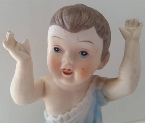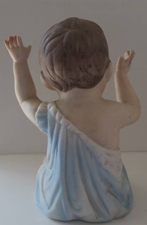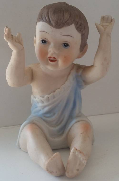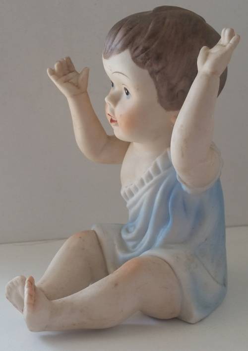 Antique Bisque Piano Baby Figurine Arms Up Reaching Unmarked