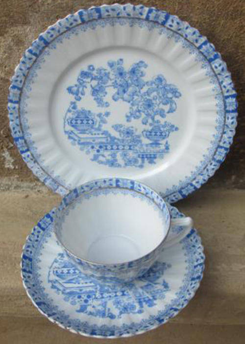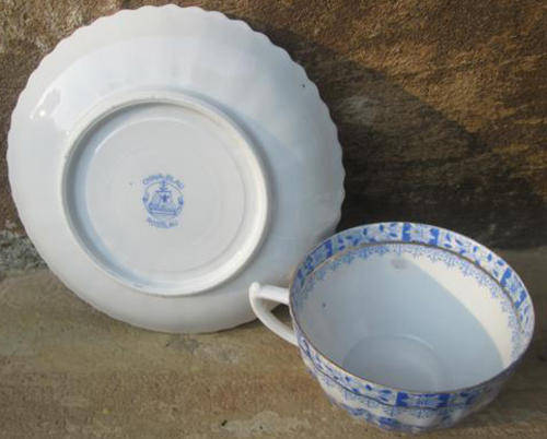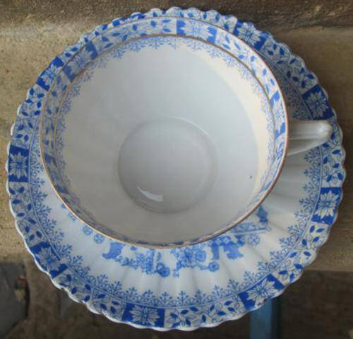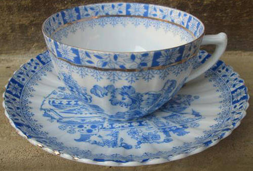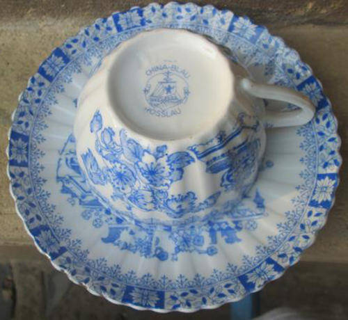 1927 - 1930....... ALMOST ANTIQUE BLUE AND WHITE, TRIO MADE FROM THE FINEST PORCELAIN HIGHLIGHTED WITH GOLD, GERMAN PRODUCED BY THE MAKER ROSSLAU. THE CONDITION IS VERY GOOD.....HEIGHT OF CUP 6cm, DIA OF CUP 8.8cm, DIA OF SAUCER 14.5cm, DIA OF PLATE 19cm.