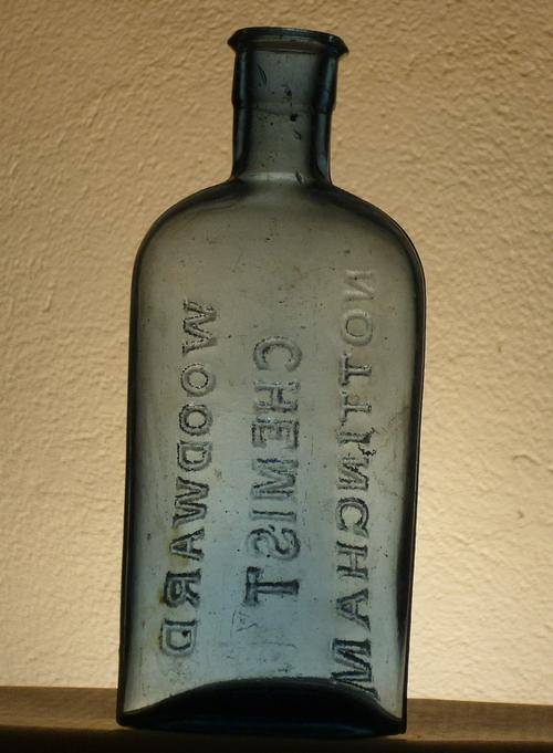 ANTIQUE BLUE WOODWARD CHEMIST BOTTLE