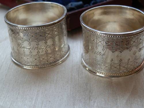 Antique boxed silver napkin rings, Sheffield, circa 1891 - 1895 - seven (7) days to pay