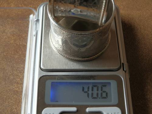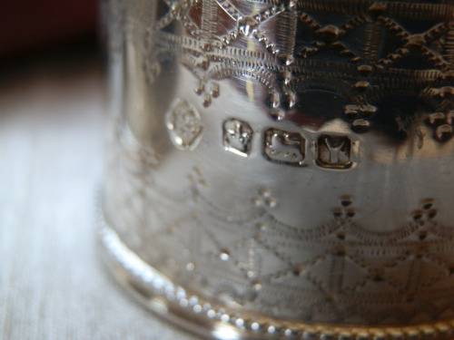 Antique silver napkin rings in original box, hallmarked Sheffield, c1891 - 95, in good condition, no dents, names inscribed on rings, clasp and hinges of box in good working condition, the lining in the box shows signs of age. The size is 2.8 x 4 cm each. The combined weight is 40.6 g.